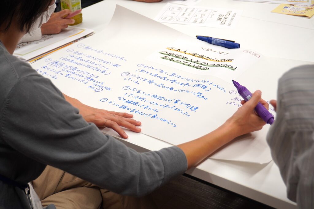 ※ワールド・カフェ方式とは、カフェのようなリラックスした雰囲気で、参加者がテーブルを移動しながら自由に意見交換を行うグループワークの手法です。