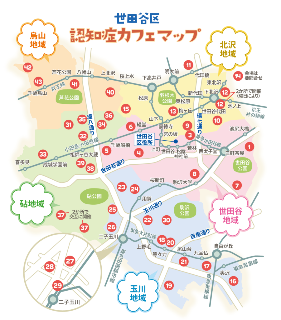 世田谷区では、多様な団体が認知症カフェを運営しています。